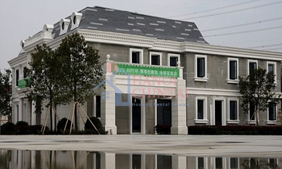 Công ty WinSu, có trụ sở tại Thượng Hải, Trung Quốc, xây dựng một tòa nhà 5 tầng và một căn biệt thự lớn ở tỉnh Giang Tô bằng cách sử dụng máy in 3D dài 150 m, cao 6 m. Các bức tường được in theo từng lớp, sau đó ghép lại để dựng thành khối hoàn chỉnh. “Mực in” là chất thải xây dựng có khả năng tái chế như sắt, thủy tinh, xi măng và chất phụ gia đặc biệt. Quy trình sử dụng vật liệu tái chế này có thể hạn chế khí thải carbon. Ảnh: Xinhua/REX.