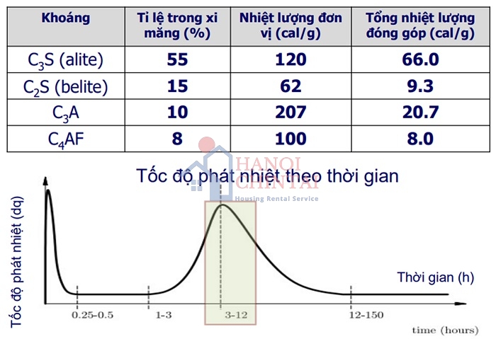 Nhiệt lượng toả ra của các khoáng trong xi măng.