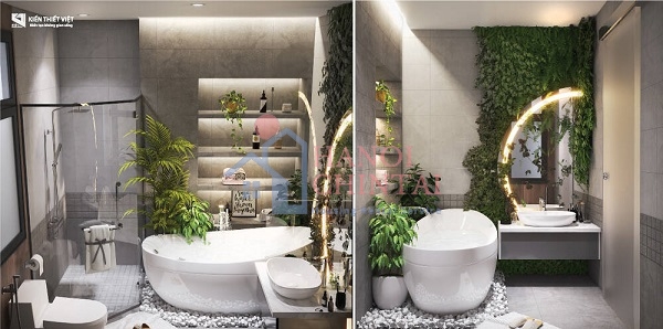 Tận hưởng giây phút thư giãn riêng tư tại gia với những mảng xanh dịu mát chuẩn nhà vệ sinh khách sạn 5 sao.