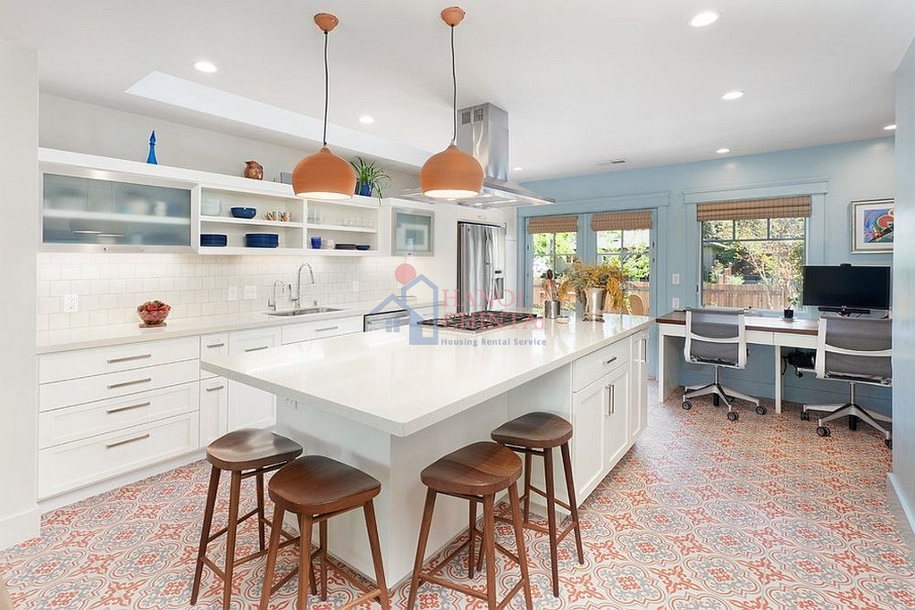 Những hoa văn nhỏ, hình khối đơn giản của những loại gạch gốm hoạ tiết thực sự phù hợp cho những không gian bếp lớn, với các sản phẩm nội thất đơn điệu về sắc màu.