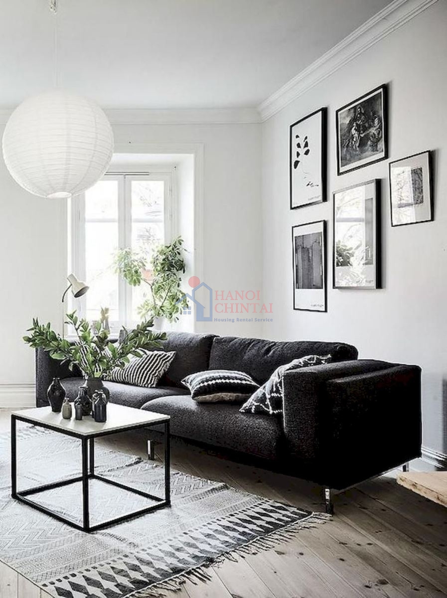 Tường trắng kế hợp với nội thất đen cũng là một gợi ý hay cho không gian nhà bạn.