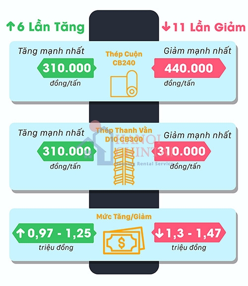 AaNhững lần điều chỉnh giá thép xây dựng trong 6 tháng đầu năm2039|15:19 - 21/06/2023Những lần điều chỉnh giá thép xây dựng trong 6 tháng đầu nămTừ đầu năm 2023 đến nay, giá mặt hàng thép xây dựng đã trải qua 17 lần điều chỉnh giá bán, trong đó có 6 lần tăng và 11 lần giảm liên tiếp. VLXD.org (TH/ CafeLand)