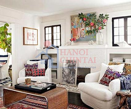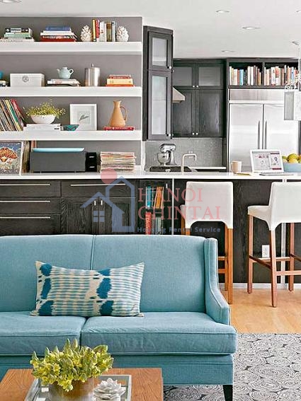 Nếu đối diện ghế sopha là một bức tường trống rỗng bạn có thể khắc phục bằng cách kê vào đó kệ sách, trưng bày các cuốn sách và phụ kiện cuốn hút hoặc một bức tranh nghệ thuật.