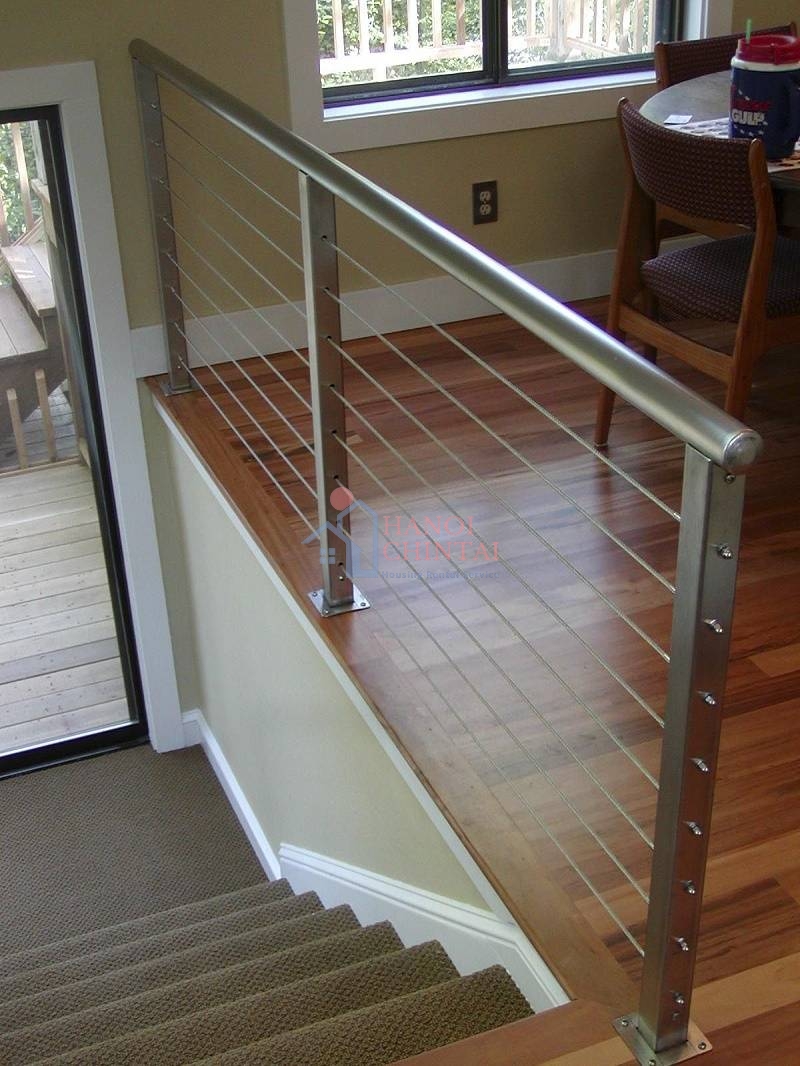 Mẫu lan can cầu thang bằng inox vô cùng quen thuộc với nhiều gia đình.