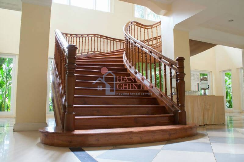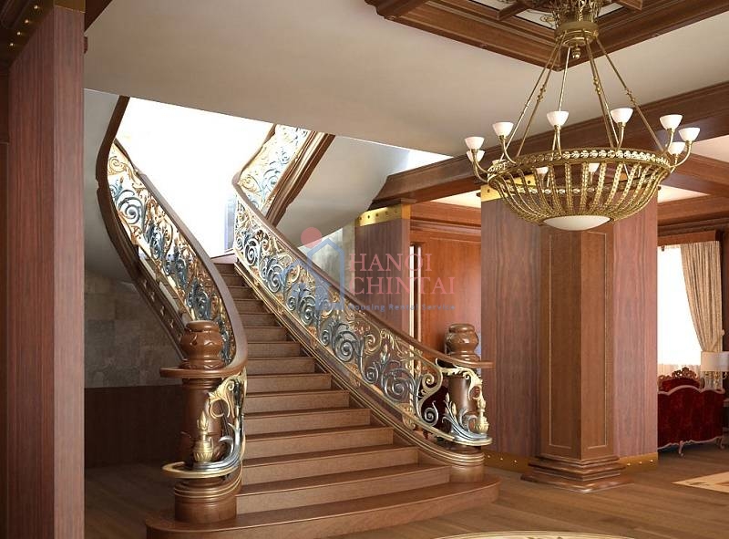Lan can cầu thang gỗ chạm khắc tinh xảo và tỉ mỉ từng chi tiết nhỏ.