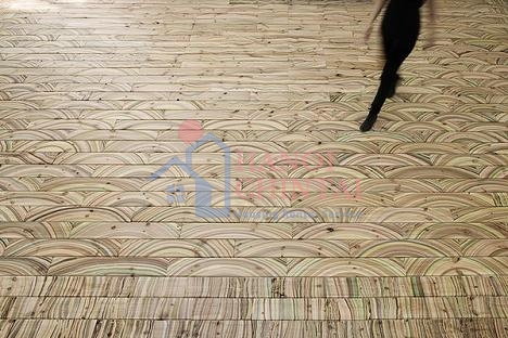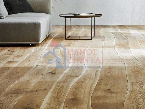 Sàn làm từ các tấm ván gỗ tự nhiên như gỗ sồi, gỗ anh đào, hạt dẻ, phong… Qua bàn tay khéo léo của những người thợ, các tấm ván có những đường cong lượn sóng mềm mại nhưng vẫn giữ nguyên được sự tự nhiên, mộc mạc.