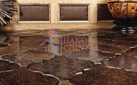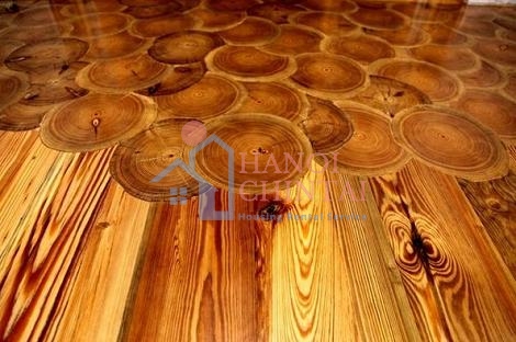 Với các đường vân gỗ thể hiện tuổi của cây, sàn nhà là sự sắp xếp các lát gỗ tạo nên sự tự nhiên nhưng không kém phần độc đáo cho cả ngôi nhà.