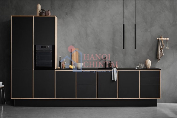 Nhà bếp được làm từ các bộ phận ván ép bạch dương có thể thay thế với mặt trước bằng vải sơn Forbo tùy chọn có sẵn với hơn 20 màu.