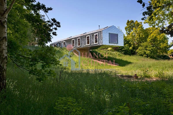 Được xây dựng bởi studio MVRDV của Hà Lan, ngôi nhà hiện lên như một sự tương phản rõ nét với khung cảnh thiên nhiên hoang sơ đẹp như tranh vẽ ở Suffolk bởi vẻ ngoài kim loại sáng bóng. Cấu trúc của ngôi nhà theo phong cách khá truyền thống với hình dạng hình chữ nhật và mái dốc, nhưng lại gây ấn tượng mạnh bởi một phần cấu trúc lơ lửng trên rìa ngọn đồi.