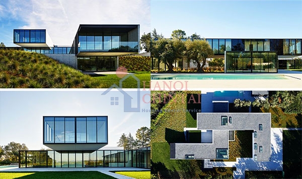 Cấu trúc của ngôi nhà này bao gồm 2 hình khối chữ L cân bằng, tạo ra những khoảng sân lớn và phần nhô ra lấy bóng râm. Chất liệu kính bao quanh giúp cho không gian được mở rộng và tối giản hóa các chi tiết, đường nét. Kiến trúc sư đã so sánh thiết kế của ngôi nhà này với điện thoại Iphone, đơn giản, tiết chế nhưng vẫn đẹp và độc đáo.