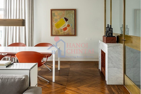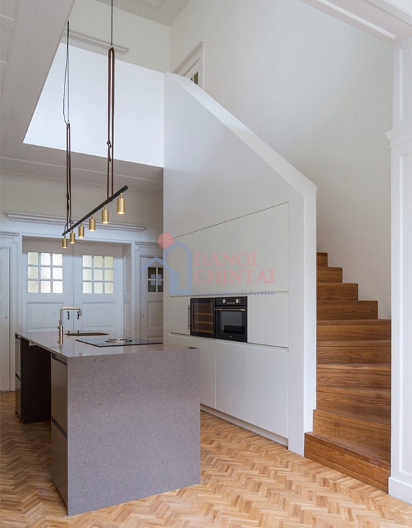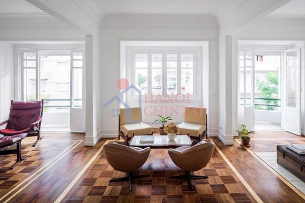 Cuộc đại tu ngôi nhà đã được hoàn thành bởi nhà thiết kế nội thất Kristina Lastauskaitė-Pundė, người muốn mang đến cho ngôi nhà một phong cách mà vẫn làm nổi bật những đường nét xa xưa và nguyên bản. Sàn chevron trải dài bên trong căn hộ để kết nối các phòng khác nhau một cách trực quan.