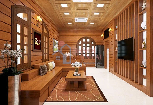Trần ốp gỗ sang trọng là loại vật liệu nội thất đẹp được nhiều gia chủ lựa chọn.