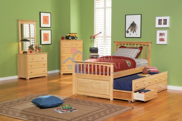 Giường ngủ trẻ em kết hợp với kệ đựng đồ, tạo thói quen sắp xếp mọi thứ ngăn nắp cho trẻ ngay từ nhỏ.