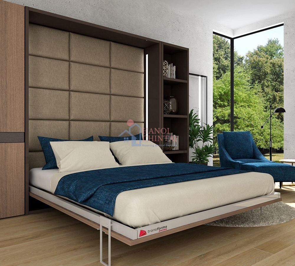 - Đối với không gian phòng ngủ. Mẫu nội thất thông minh cho phòng ngủ được ưu tiên lựa chọn hiện nay là giường ngủ thông minh đa chức năng dạng âm tường, hay giường tầng có thể xếp gấp lại hay che giấu sát tường khi không dùng đến hoặc dựng lên hệt như một chiếc tủ áo sẽ là giải pháp thích hợp nhất cho phòng ngủ có diện tích khiêm tốn.