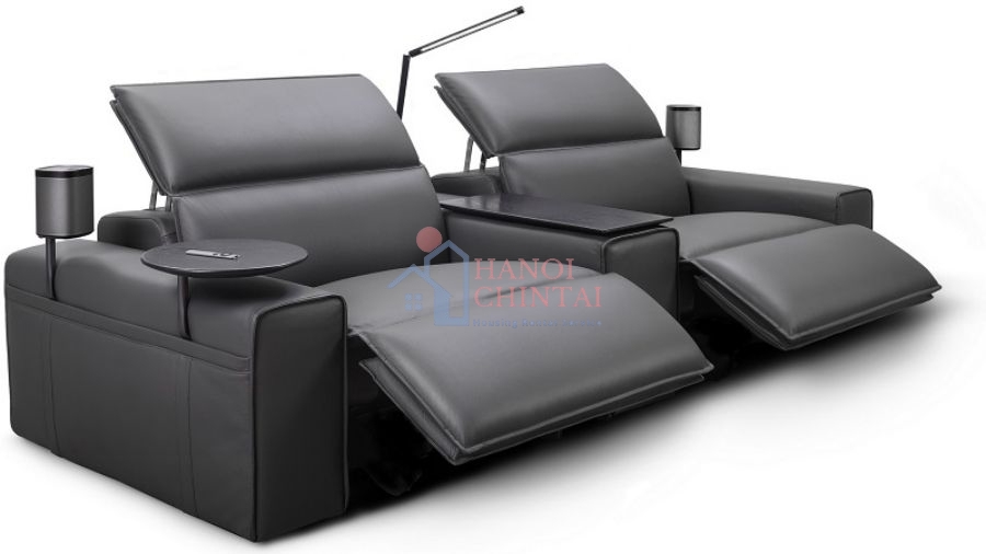 Ghế sofa có thể kéo ra để làm chỗ duỗi chân. Ngoài ra bên cạnh tay cầm của sofa còn tích hợp đèn, bàn để bạn đọc sách thuận tiện.