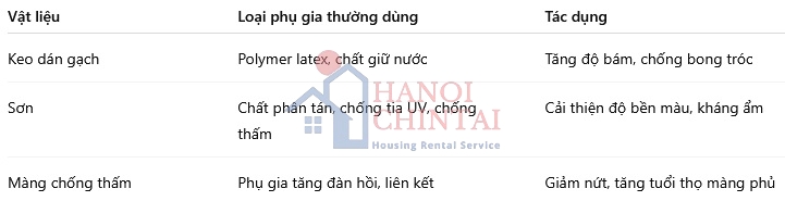 Phụ gia cho vật liệu hoàn thiện (keo dán gạch, sơn, chống thấm...)