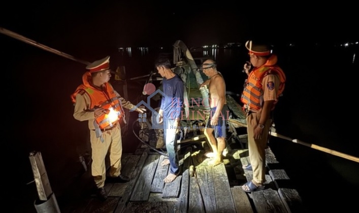 Phòng CSGT Công an tỉnh Quảng Bình bắt quả tang thuyền gỗ khai thác cát trái phép trên sông Gianh (Ảnh: Công an tỉnh Quảng Bình).