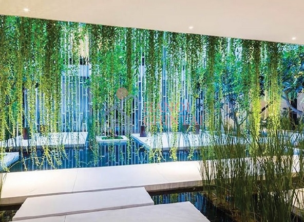 Ngoài ra cũng có những thiết kế sử dụng cây thân thẳng, mảnh dẻ nhưng vững chắc như cây trúc cảnh, rất hợp làm “rèm” che cho những khe sáng, giếng trời dọc nhà.