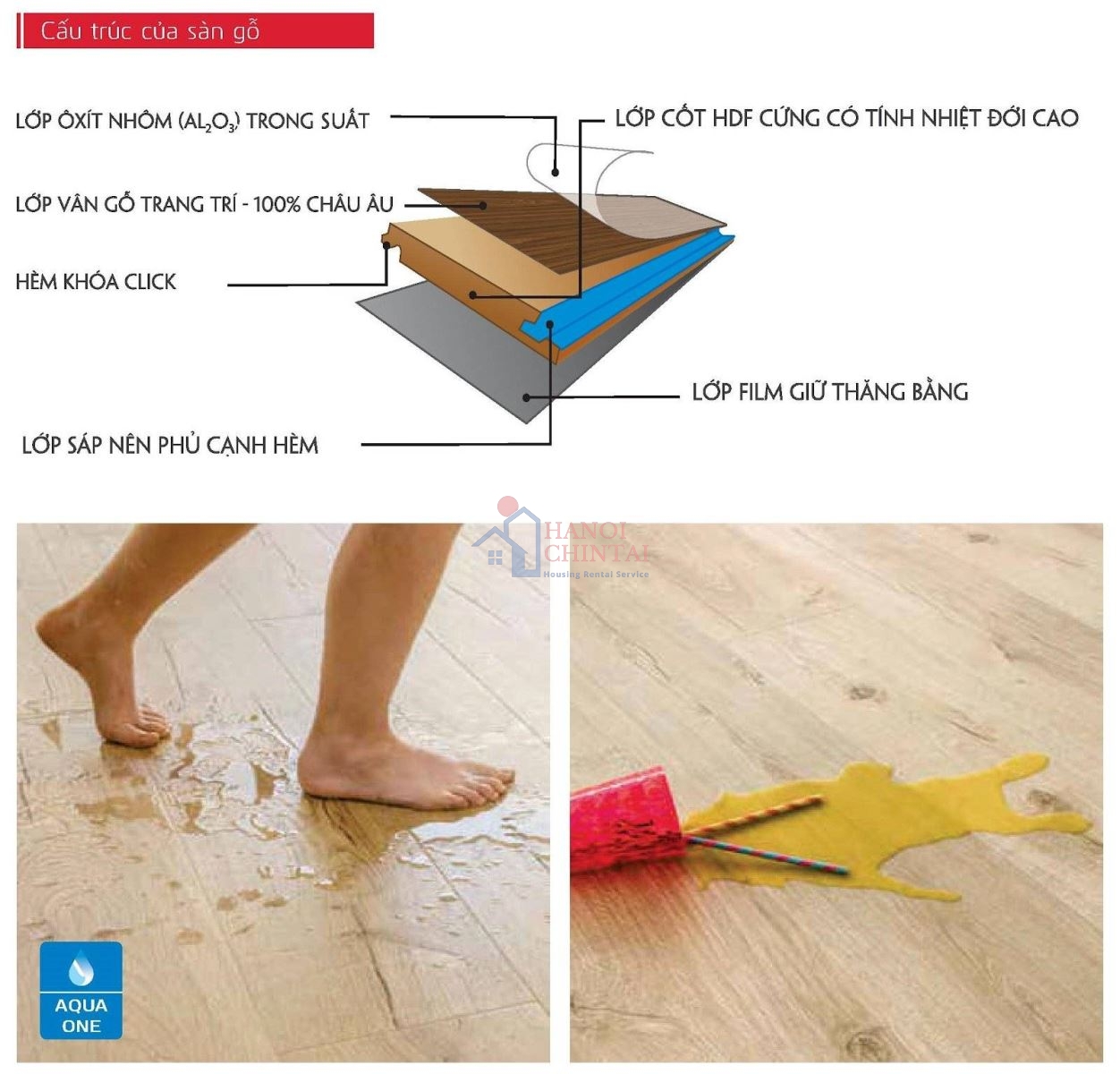 Sàn gỗ có khả năng chống thấm nhưng cũng nên sử dụng và bảo quản cẩn thận.