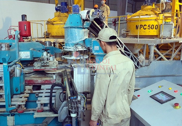 (Trong ảnh là quy trình phối trộn nguyên liệu làm gạch không nung)