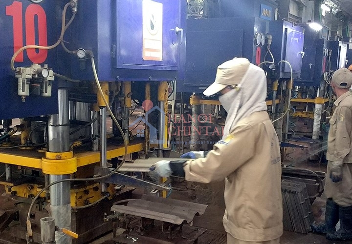 Dây chuyền sản xuất tại Nhà máy gạch ngói không nung Thanh Tuyền (Thôn Xuân Bình, xã Bình Khê, Thị xã Đông Triều, Quảng Ninh) chuyên nhập nguyên liệu tro xỉ của Nhà máy điện Mạo Khê.