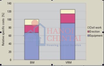 Cần chú ý rằng các bộ phận để nghiền chiếm khoảng 40% trọng lượng của thiết bị mua và lắp đặt cho hệ thống máy nghiền bi, điều này giải thích tại sao đơn giá thiết bị và lắp đặt máy nghiền con lăn đứng cao hơn đáng kể so với máy nghiền bi.