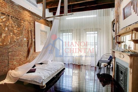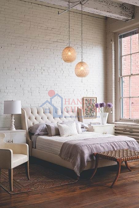 Những bức tường gạch nung với đường nét quết vôi trắng loang lỗ, hài hòa nét đẹp chung với giường, phông màn màu trắng tinh khiết, đem lại cảm giác hài hòa, êm dịu nhưng cũng có điểm nhấn thực sự.