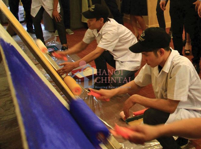 Khách hàng trải nghiệm việc sử dụng sơn sinh thái.