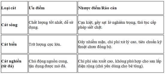 So sánh các loại cát thay thế hiện nay