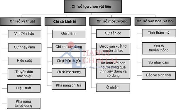 Hình 1. Các nhóm chỉ số lựa chọn vật liệu.