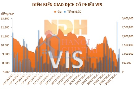 Trong một tháng qua, giá cổ phiếu VIS đóng cửa dao động trong biên độ 8.500 – 12.400 đồng/cp, khối lượng giao dịch bình quân là 767.517 đơn vị, trị giá giao dịch bình quân là 8,3 tỷ đồng/phiên.