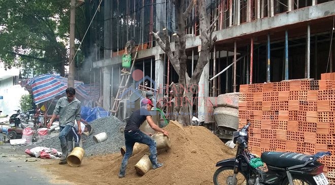 Đang vào cao điểm mùa xây dựng nên việc thi công tại công trình khá nhộn nhịp.