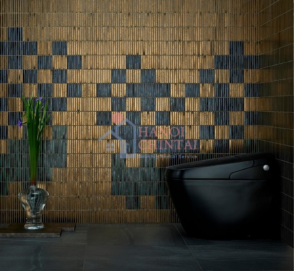 Dòng gạch nội thất Dent Cube của INAX lấy cảm hứng thiết kế từ cốc đong gạo làm từ cây thông của Nhật Bản. Ảnh: INAX
