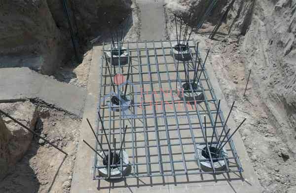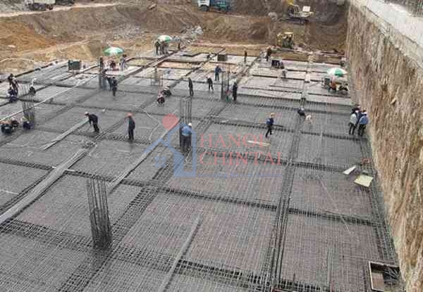 Thép sử dụng trong bản móng có kích thước tối thiểu là Φ12a150. Trong khi đó, thép của dầm móng có kích thước như sau: thép dọc có đường kính 6Φ(18-22). Trong khi đó thép đai là Φ8a150.