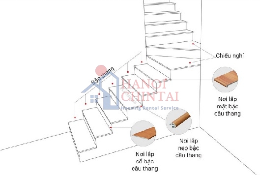 Chiếu nghỉ: Kích thước chiếu nghỉ phải bằng hoặc lớn hơn bề rộng vế thang để tạo không gian nghỉ ngơi thoải mái.