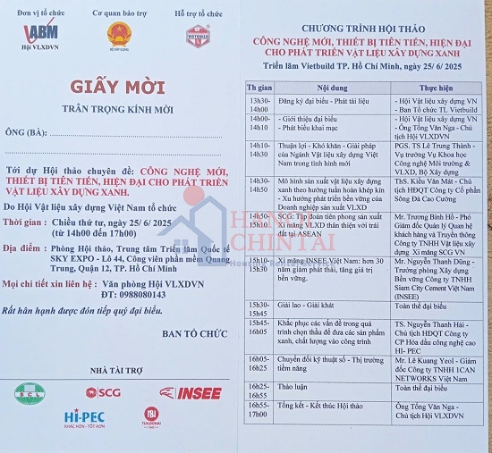 Theo đó, Hội thảo sẽ diễn ra vào chiều 25/06/2025 (từ 14h00 đến 17h00) tại Trung tâm Triển lãm Quốc tế SKY EXPO VIỆT NAM, Lô 44, Công viên Phần mềm Quang Trung, Quận 12, TP. Hồ Chí Minh.
