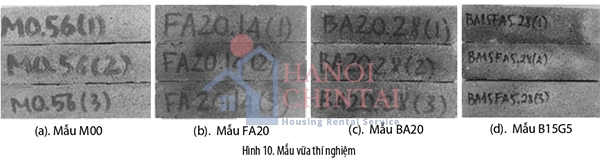 (1). Ảnh hưởng của SCBA và FA đến tính chất ướt và tính chất vật lý của hỗn hợp vữa trái ngược nhau. SCBA làm giảm tính công tác, giảm khối lượng riêng và khối lượng thể tích của hỗn hợp vữa. Trong khi đó FA yêu cầu lượng nước thấp hơn, khối lượng riêng và khối lượng thể tích của hỗn hợp vữa chứa FA tương đương hỗn hợp đối chứng.