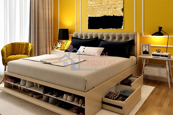Với kiểu giường này, mọi vật dụng sẽ nhanh chóng được cất gọn vào những ngăn kéo lớn bên dưới nệm, giúp căn phòng luôn gọn gàng và ngăn nắp. Nếu bạn đang muốn thay đổi diện mạo phòng ngủ, chiếc giường có ngăn kéo không chỉ là một giải pháp tiết kiệm không gian hiệu quả mà còn tạo điểm nhấn hiện đại, thể hiện gu thẩm mỹ tinh tế của gia chủ.