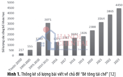 Việc sử dụng CDW làm cốt liệu để sản xuất RAC lần đầu tiên được giới thiệu và áp dụng trong và sau Thế chiến thứ hai do một lượng lớn gạch vụn và mảnh vụn được tạo ra sau các vụ bắn phá vào các thành phố, đặc biệt là ở Vương quốc Anh và Đức [9]. Vào thời điểm đó, người ta thấy rằng RAC có khả năng hấp thụ nước cao hơn, cường độ nén thấp hơn, khả năng chống đóng băng/tan băng tương đương và ít co ngót hơn NAC [10]. Từ năm 1945 đến năm 1985, nghiên cứu toàn diện tập trung vào các quy trình tái chế (ví dụ: phân tách và sản xuất), tính chất RA (ví dụ: mật độ, hình dạng, khả năng hấp thụ nước) và nhiều hơn nữa về các tính chất cơ học (ví dụ: tính cường độ chịu nén, kéo và uốn) cũng như hiệu suất độ bền (ví dụ: tính thấm, khả năng chống băng giá hoặc cacbonat hóa) của RAC [11]. Cho đến thế kỷ 21, thiết kế hỗn hợp RAC, sử dụng RAC làm bê tông dự ứng lực và các kết cấu quy mô lớn (ví dụ: dầm RAC dài 15 mét dưới ứng suất trước khoảng 1300kN từ Dolara và cộng sự sau đó đã được xem xét lại. Gần đây, trọng tâm nghiên cứu đã được thay đổi để nâng cao chất lượng RA. Do nhận thức ngày càng cao về bảo vệ môi trường và nhu cầu phát triển bền vững nên ngày càng có nhiều nghiên cứu về RA và RAC. Đặc biệt trong những năm gần đây, số lượng ấn phẩm về RAC tăng theo cấp số nhân như minh họa trong Hình 1. Những nghiên cứu sâu rộng này có kiến thức nâng cao về RA và RAC, ví dụ: các tính chất cơ, lý/hóa của RA và RAC, các phương pháp nâng cao và mô hình độ bền để dự đoán các đặc tính RAC. Ngoài ra, số lượng ấn phẩm ngày càng tăng trong lĩnh vực RA và RAC. Một số tiêu chuẩn hoặc hướng dẫn quốc gia đã được phát triển cho RAC: ví dụ DIN 4226-100 (2002, Đức), JIS A 5021/5022/5023 (Nhật Bản), BS 8500:2 (2002, Vương quốc Anh) (BSI.BS 8500-2 2002, Vương quốc Anh).
