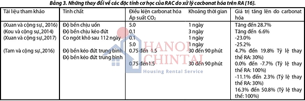 - Độ sâu cacbonat hóa: Do RAC có mật độ thấp hơn NAC, nghĩa là độ xốp lớn hơn nên nhìn chung độ sâu cacbonat hóa của RAC cao hơn NAC tương ứng [15].