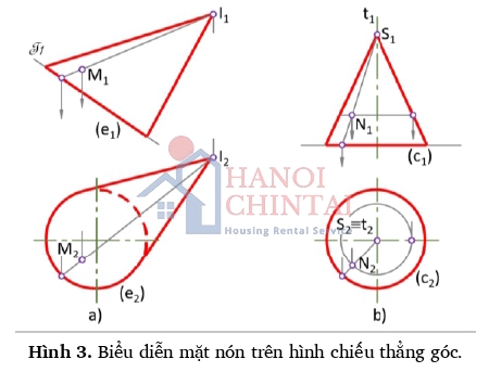 3. Biểu diễn mặt nón trên hình chiếu thẳng góc