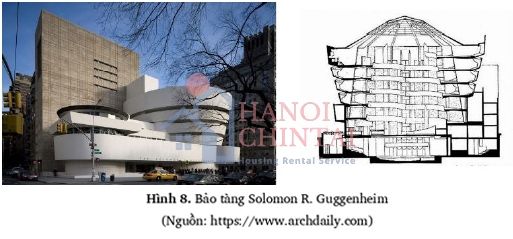 Bảo tàng Solomon Robert Guggenheim là tác phẩm cuối cùng trong số 600 công trình đã xây dựng của kiến trúc sư Frank Lloyd Wright, được hoàn thành vào năm 1959 tại Thành phố New York (Hoa Kỳ). Công trình có khu vực bảo tàng chính mang hình dáng một mặt nón cụt dưới nhỏ, trên to. Sau khi đi thang máy lên trên, người xem theo một sàn nghiêng thoải dần, xoắn ốc xuống dần tới tầng một. Đó là một không gian bảo tàng kiểu mới, người tham quan đứng ở vị trí nào ở các tầng cũng có thể chiêm ngưỡng cây xanh và trang trí ở tầng một.