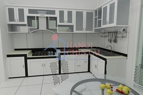 Nội thất tủ bếp nhôm kính trong căn hộ.