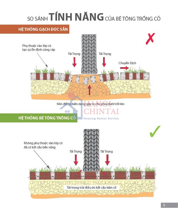 Khả năng chịu tải của loại hình này cao hơn so với việc lát gạch trồng cỏ thông thường.