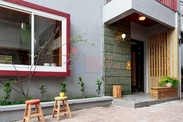 Cửa vào được đẩy lùi sâu khoảng 1m để tránh nắng gay gắt vào buổi trưa.