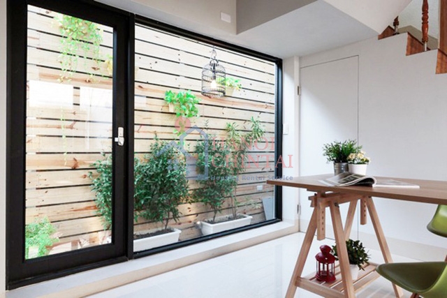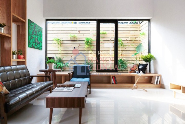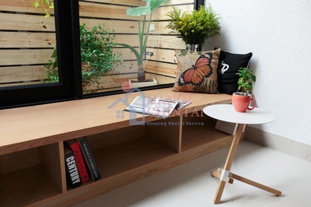 Đặt một chiếc bàn nhỏ và ghế dài cạnh cửa sổ để chủ nhân có thể có những giây phút thư giãn ngắm khu vườn bên ngoài.