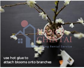 - Dùng súng bắn keo gắn hoa lên các cành sao cho trông tự nhiên nhất.