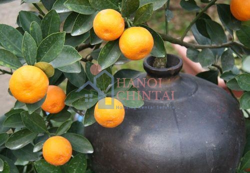 Khoảng nửa tháng trước Tết là những chậu cam nhỏ bắt đầu tràn xuống các cung đường phố xá. Theo quan niệm phong thủy, những quả cam vàng ruộm trông giống mặt trời mang đến các nguồn năng lượng dương (tích cực), là biểu tượng của sự trù phú và hạnh phúc.