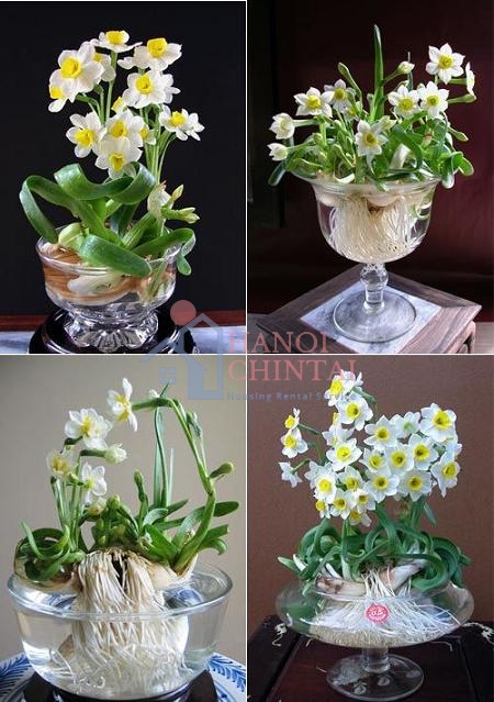 Hoa thủy tiên là biểu tượng của sự kiêu sa, quyền quý. Màu vàng tươi sáng của hoa là biểu tượng của sự hồi sinh, dấu hiệu bắt đầu mùa xuân. Đặc biệt, gia đình nào có một chậu hoa thủy tiên nở đúng đêm Giao Thừa sẽ gặp nhiều tài lộc, sung túc và may mắn trong năm mới.