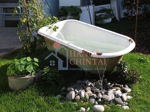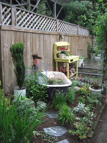 Bồn tắm cũ sau khi đã không còn được sử dụng trong nhà tắm, bạn có thể mang chúng ra vườn, đặt ở trung tâm của góc vườn thường được bạn trang trí. Tạo vẻ đẹp cho không gian ngoại thất bằng cách tạo đường nước chảy róc rách từ xô, chậu cũ đổ xuống bồn tắm. Cách làm đơn giản này không chỉ giúp vườn mát mẻ hơn mà còn tạo không gian xanh tươi, điểm nhấn đẹp mắt cho khoảng diện tích ngoài trời của gia đình.